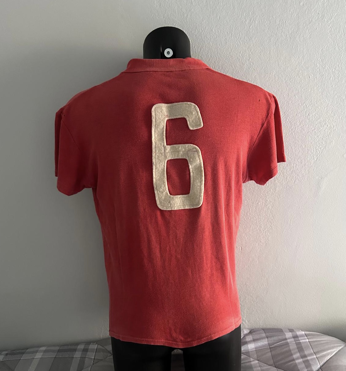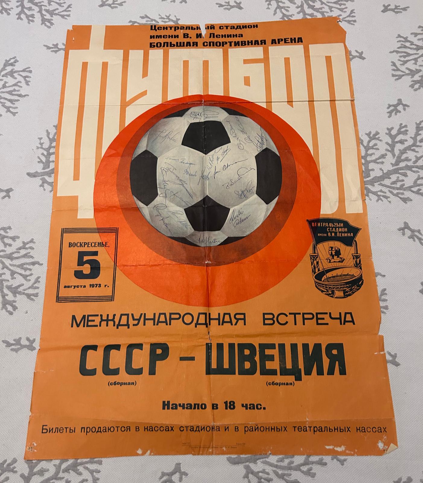 Trovare una maglia dell’URSS degli anni 70 è cosa abbastanza rara ed è confermato dall’incredibile storia che ha questa maglia, raccontata direttamente dal suo precedente proprietario, un ex calciatore della nazionale svedese. Era infatti assolutamente vietato dal regime comunista avere ogni genere di contatto con i calciatori delle squadre avversarie, specie quelle occidentali e soprattutto scambiare la maglia. È una storia che ho già sentito ad esempio per le maglie dell’Albania, dove il regime proibiva (credo anche per una questione economica) lo scambio di maglia con gli avversari. Per mia fortuna invece, l’8 agosto del 1973, dopo l’amichevole tra Unione Sovietica e Svezia, finita 0-0, il calciatore svedese da cui proviene la mia maglia si accordò con il sovietico Viktor Kuznetzov per lo scambio delle rispettive maglie e per farlo, organizzarono lo scambio nei sotterranei dello Stadio Centrale Lenin (ora stadio Luzhniki), lontano da occhi indiscreti per evitare spiacevoli sanzioni per il calciatore ospitante. Insieme alla maglia, il calciatore svedese ottenne anche il poster del match e un gagliardetto con lo stemma sovietico.