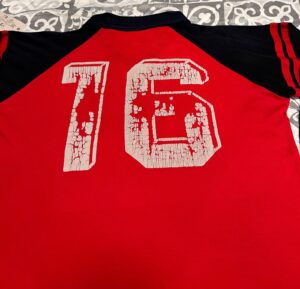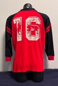 La maglia sul retro reca il numero 16 in vernicetta, parzialmente visibile a causa dell’usura della maglia dovuta probabilmente ai continui lavaggi. Vedendo i tabellini, il numero 16 risulta utilizzato da Elio Garavaglia e Giuseppe Papandrea.