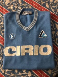 Con l’arrivo di questa maglia, colmai una lacuna stranissima che a volte capitano nella nostra ricerca: avevo infatti la Cirio bianca che è molto più rara della azzurra, ovviamente essendo maglia da trasferta e quindi usata poche volte e mancava invece la maglia azzurra: eccole finalmente riunite come si vede in foto.