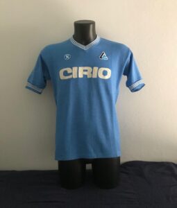Oggi presento una di quelle maglie più inseguite da quando ho cominciato a collezionare maglie anni 80. Si tratta della maglia azzurra a manica corta, prodotta da Linea Time ed utilizzata dal Napoli unicamente nella stagione 1984-85.