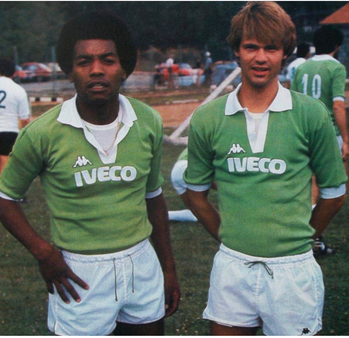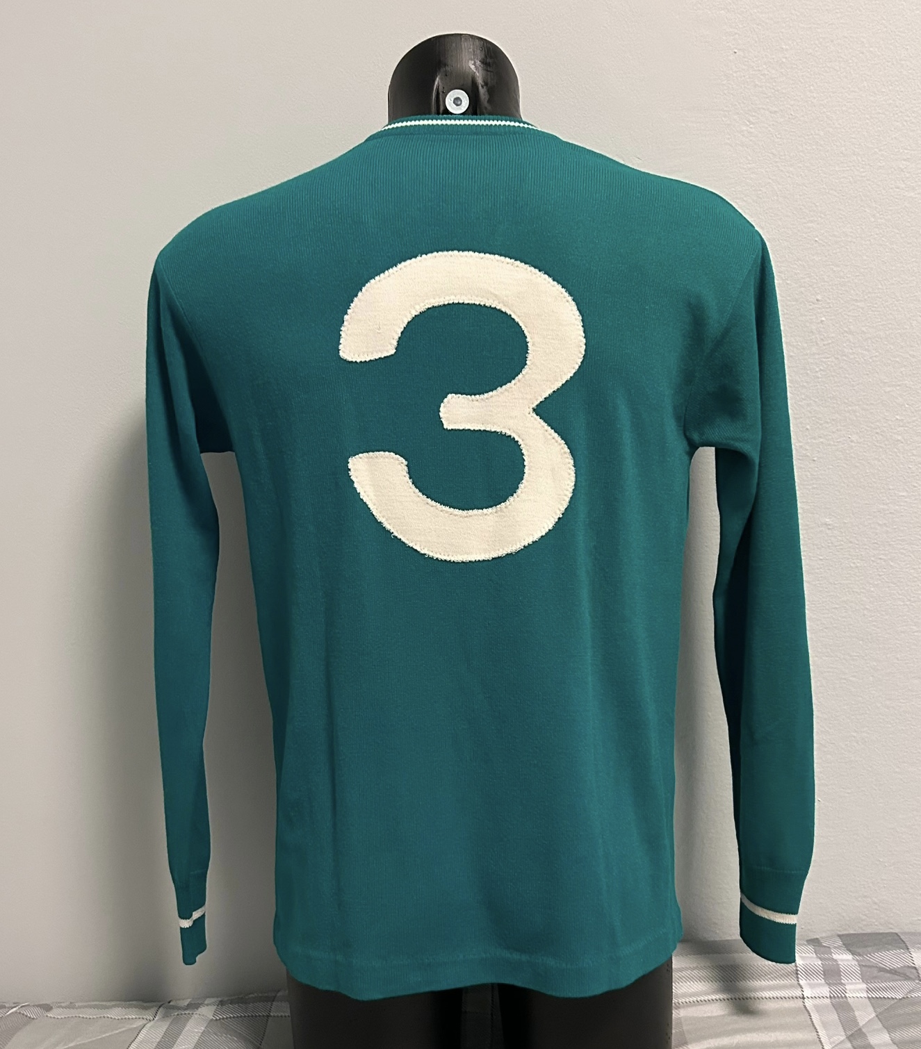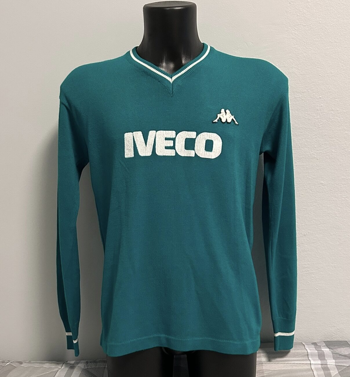 La curiosità legata a questa maglia è che, di base, si tratta di un modello prodotto dalla Ennerre negli anni Settanta ed utilizzato dall’Avellino con il marchio Robe di Kappa, sponsor tecnico dei biancoverdi solo per questa stagione. Le fattezze della maglia e l’assenza di etichette confermano tale assunto: la maglia è infatti con una striscia bianca nel colletto e nei polsini proprio come la maglia del Napoli della stagione 1976-77 già in mio possesso. Ad ulteriore conferma di ciò, anche il numero 3 sul retro, il classico utilizzato su maglie Ennerre, in panno.