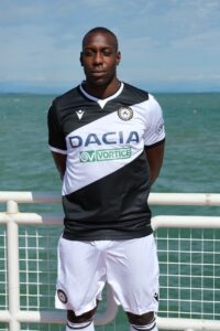Il modell, come detto, è celebre ed iconico: fu usato, con qualche distinzione anche per le stagioni successive (1985-86 e 1986-87) e ripreso, dopo trentacinque anni, per la stagione 2020-2021 (in foto l’attaccante italiano Stefano Okaka con la maglia rievocativa di quella che sto raccontando).