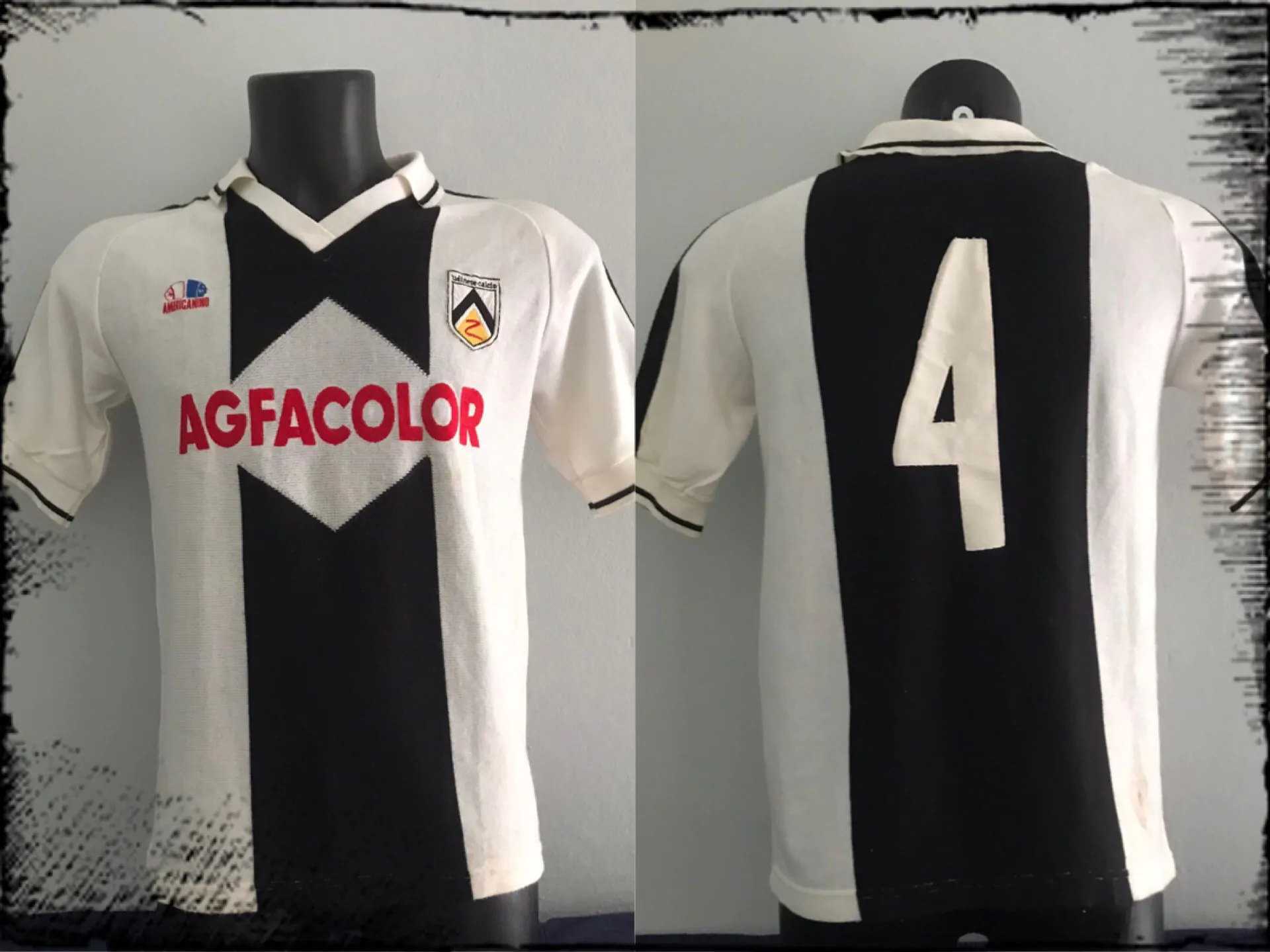 Il risultato finale fu di 2-2: per i bianconeri andarono a segno Massimo Mauro e Attilio Tesser. Il numero 4 come era il biondo centrocampista Manuel Gerolin, che vediamo in foto durante il match in cui si riconosce la forma particolare del numero 4 in similpelle. La cosa particolare è che si trattava di amichevole di fine stagione e l’Udinese già presentava le maglie che avrebbe utilizzato la stagione successiva.