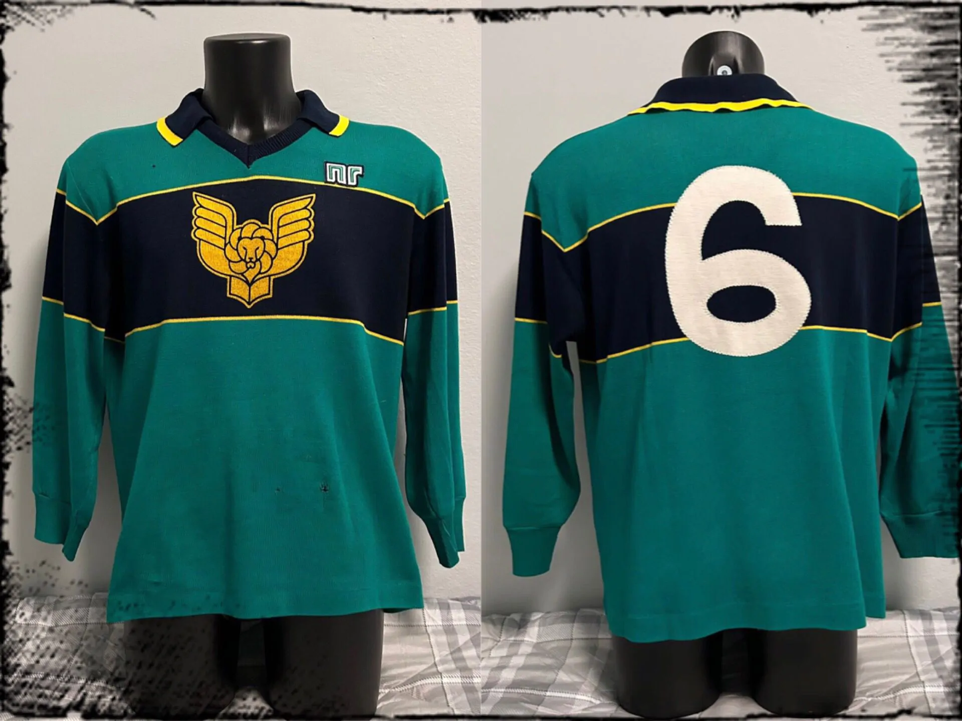 La maglia ha tutte le caratteristiche Ennerre con numero 6 cucito sul retro perfettamente e in classico acrilico pesante tanto a me caro. Molto bello è anche il richiamo al colore giallo del Leone Alato che troviamo sui bordi del colletto e sulle strisce che limitano la banda nera centrale.