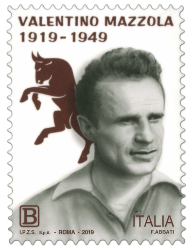 GLIEROIDELCALCIO.COM (Federico Baranello) – Oggi, nel centenario della nascita di Valentino Mazzola, tra le tante iniziative in ricordo del grande campione anche un francobollo a lui dedicato. Poste Italiane rende disponibile da oggi il francobollo appartenente alla serie tematica “lo Sport” e dedicato appunto a Valentino Mazzola. La tiratura è di due milioni e cinquecentomila esemplari con valore pari a 1,10 euro. Il francobollo è stampato dall’Istituto Poligrafico e Zecca dello Stato spa, in rotocalcografia, su carta bianca, patinata neutra, autoadesiva, non fluorescente. La vignetta a cura di Fabio Abbati, raffigura un ritratto di Valentino Mazzola in primo piano e sullo sfondo la sagoma di un toro in posizione rampante, presente nello stemma del Grande Torino, la squadra da tutti riconosciuta come una delle più forti al mondo nella seconda metà degli anni ’40 di cui il giocatore ne fu capitano e simbolo. Per l’occasione è stato realizzato anche un folder in formato A4 contenente il francobollo, una cartolina annullata ed affrancata, una busta primo giorno di emissione.
