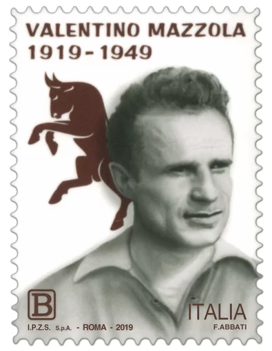 La prima volta avvenne il 4 maggio 1999: due francobolli emessi per il cinquantenario della sciagura di Superga. Un 800 lire e un 900 lire: nel primo appare una squadra con delineati solo i margini, nessun volto. In evidenza invece il solo Capitano. Nel secondo ci sono scritti tutti i nomi dei giocatori scomparsi in quella tragica giornata.